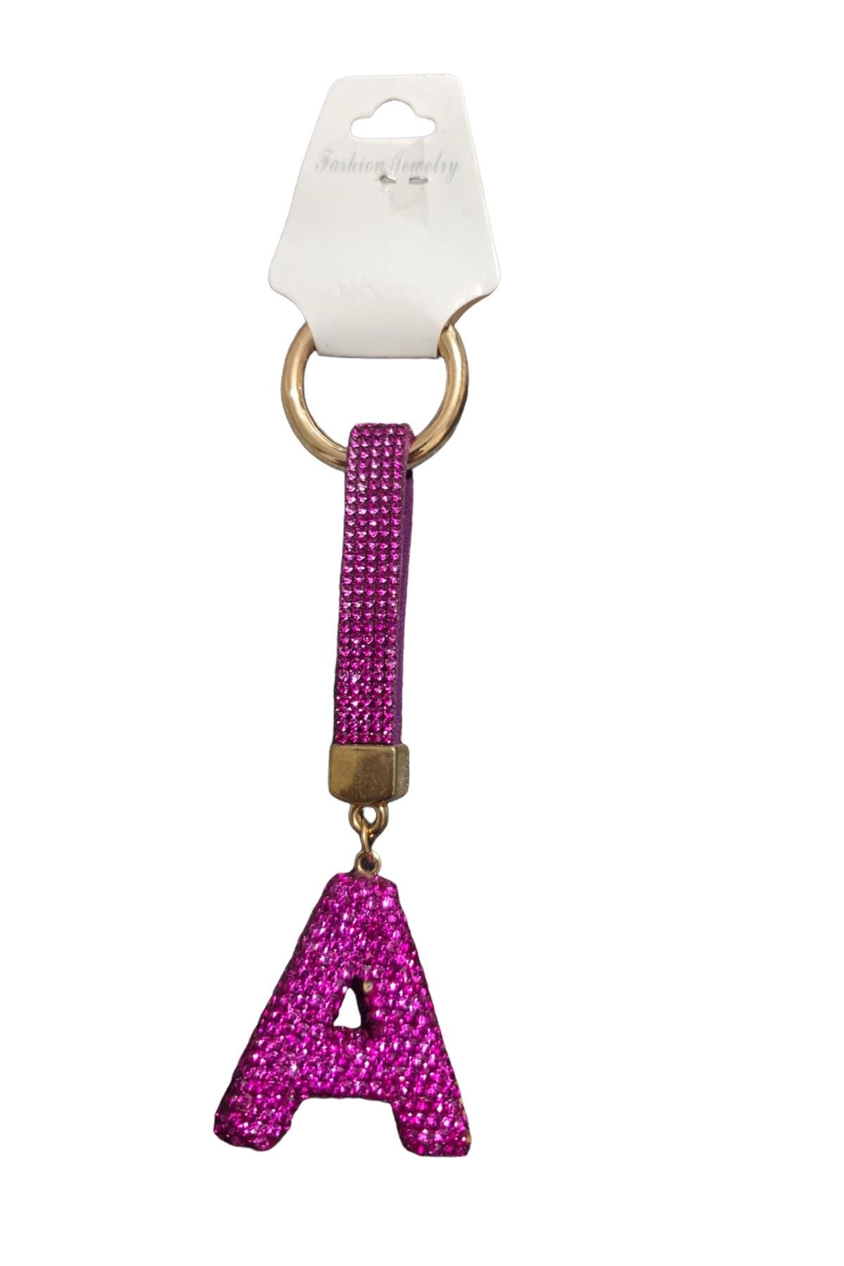 A Harfi Taşlı Pembe Anahtarlık Parıltılı Çanta Aksesuarı ve Anahtarlık